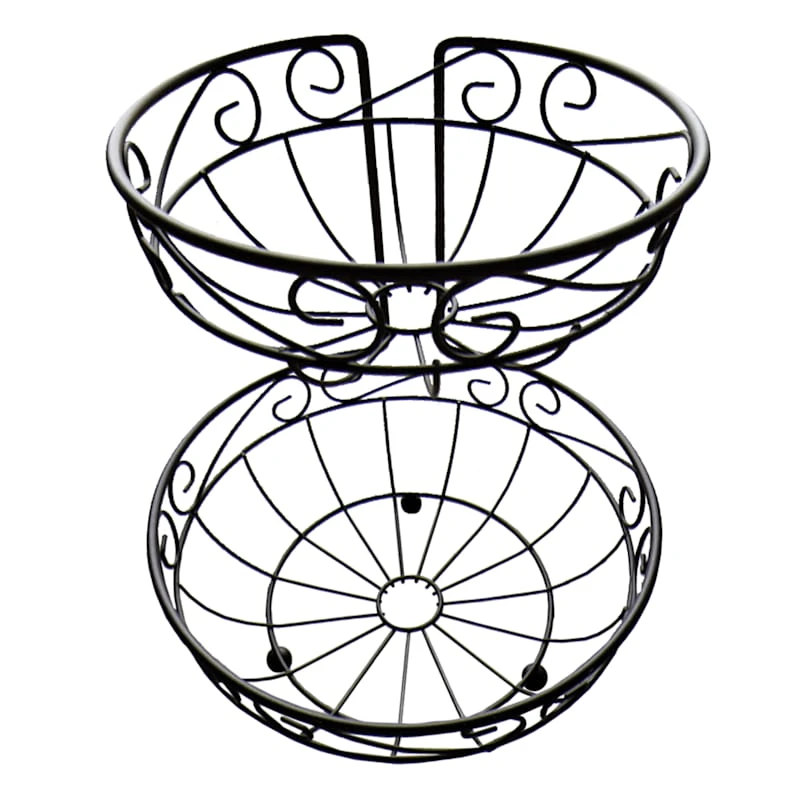 2-Tier Brown Metal Scroll Fruit Basket