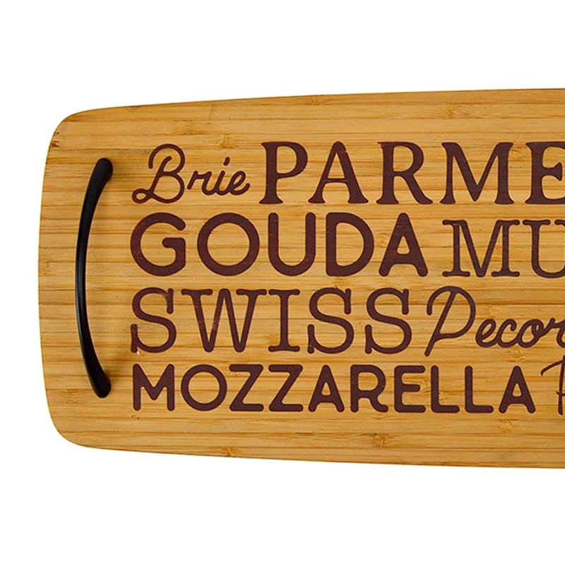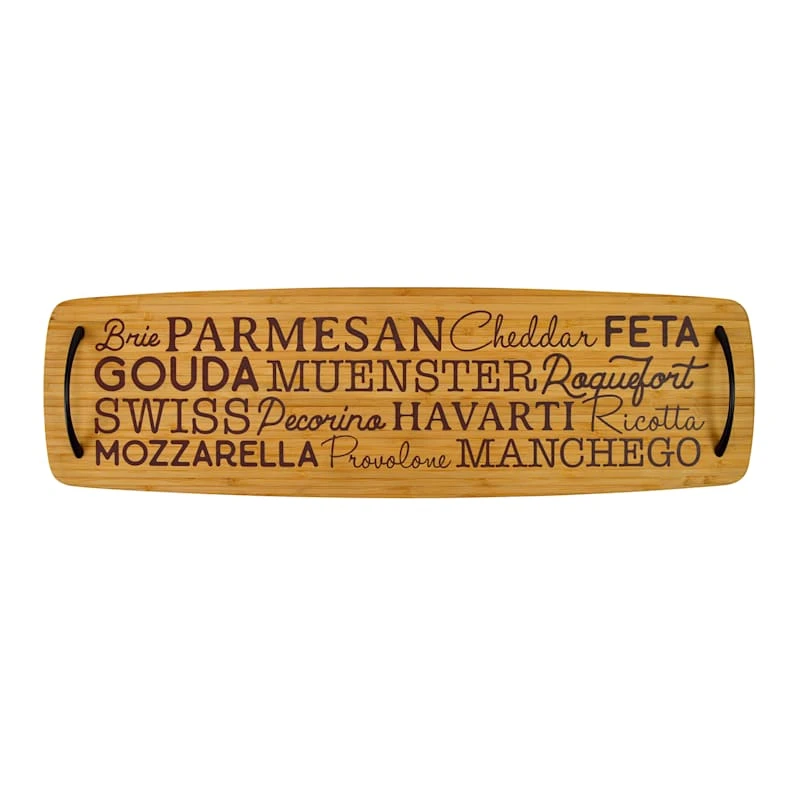 Cheese Names Bamboo Wood Serving Board With Handles, 23"