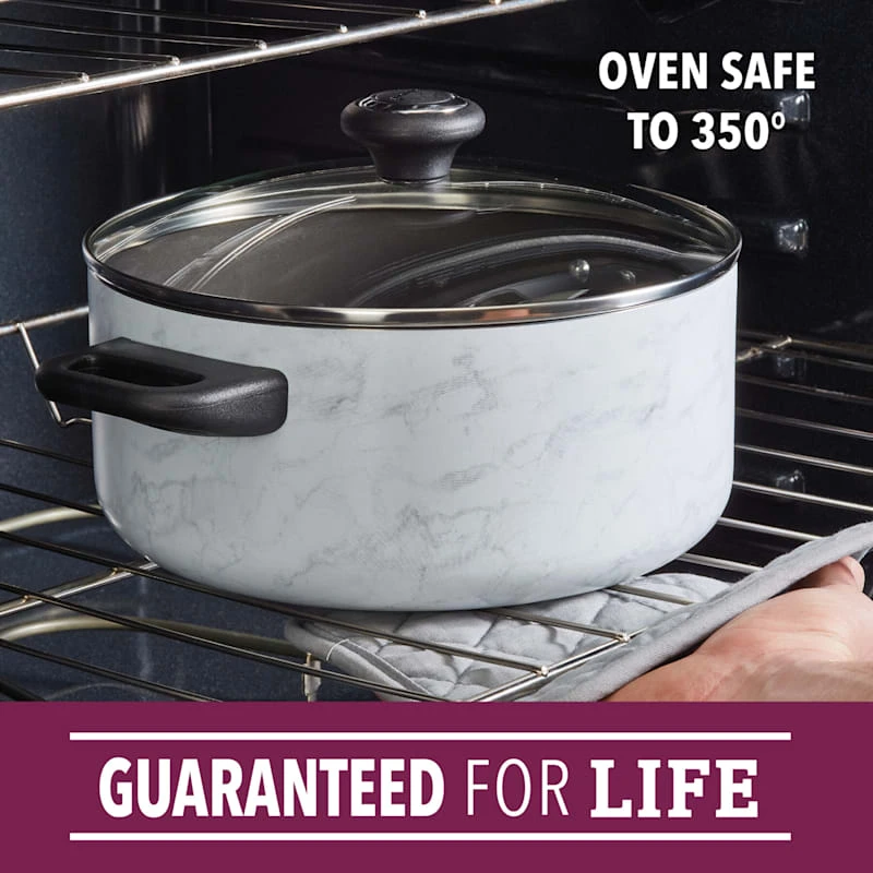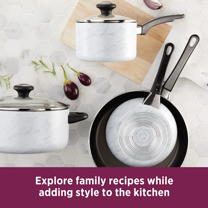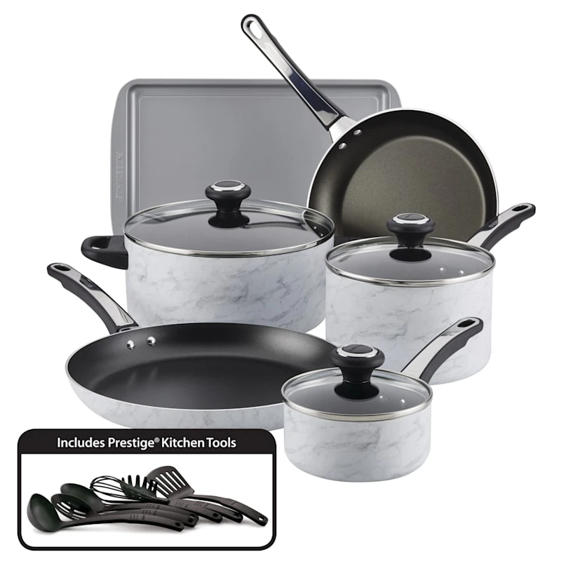 Farberware 15-Piece Designs Non-Stick Cookware Set, White Marble-Look