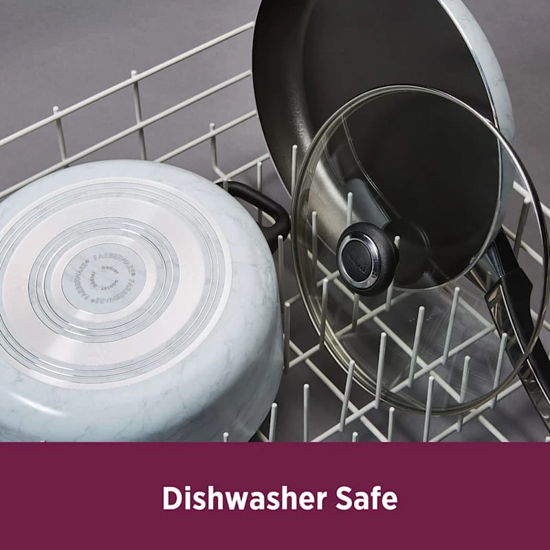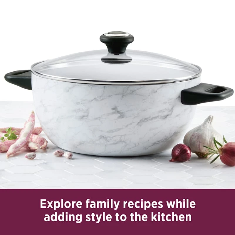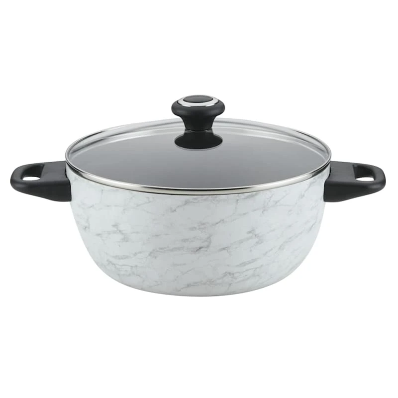 Farberware Designs Non-Stick White Marble-Look Casserole Pan With Lid, 5.5qt
