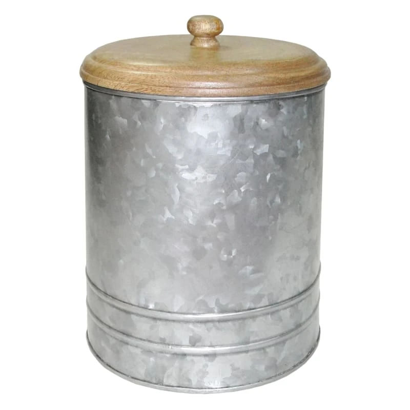 Galvanized Metal Canister With Wood Lid, Large