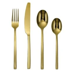 Simply and beautifully crafted of stainless-steel metal, our 16-piece Beacon gold flatware set is exquisitely designed for functionality, durability and, of course, beauty. This simple, modern yet classy design features slender, grip-friendly handles. You can’t go wrong with this modern flatware set that is absolutely comfortable in casual settings but is also able to elevate your evening meals into fine dining.
