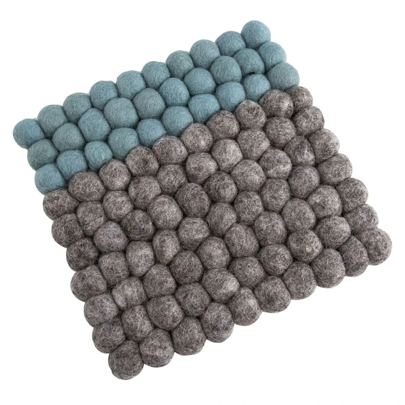Grey & Blue Felt Pom-Pom Ball Trivet