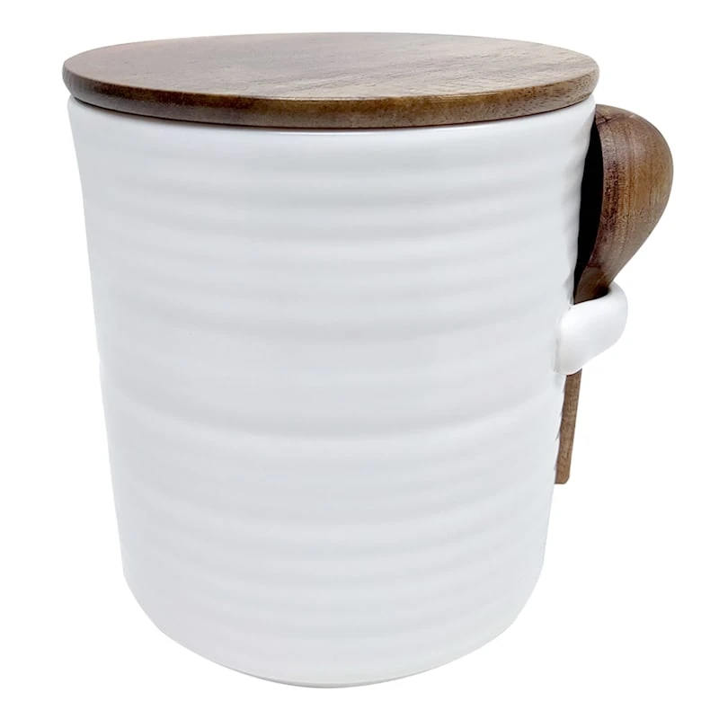 Honeybloom Ceramic Canister With Wooden Lid & Spoon, Small