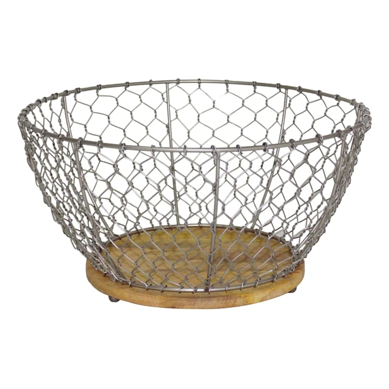 Iron Chicken Wire Basket With Mango Wood Base, Large