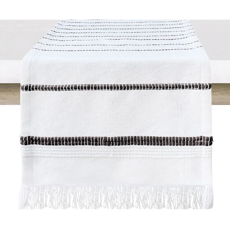 Kenya Black Striped Fringe Table Runner, 14×72