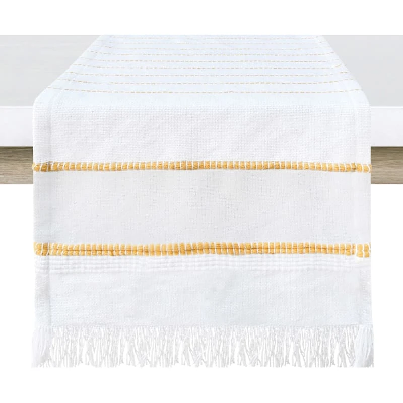 Kenya Gold Striped Fringe Table Runner, 14×72