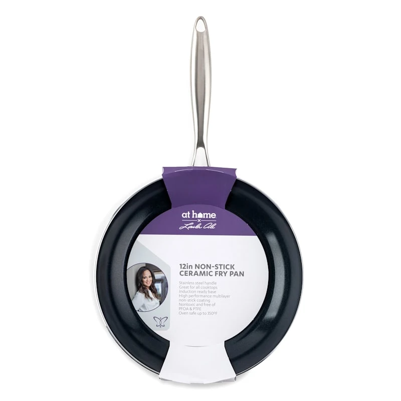 Laila Ali brings the mindset of a world-champion athlete and passion for healthy living to create a modern lifestyle collection with serious style found only At Home. Perfect for all cooking surfaces, our midnight ceramic cookware features a high-performance multilayer nonstick coating. This ultra-durable 12in. fry pan, including the comfortable stainless steel handle, is oven safe up to 350 degrees. PFOA and PTFE free.