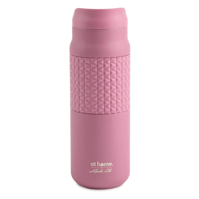 Laila Ali brings the mindset of a world-champion athlete and passion for healthy living to create a modern lifestyle collection with serious style found only At Home. This 24oz. pink mocha stainless steel tumbler comes with a textured diamond silicone sleeve for when you hold the tumbler. Go out with this stylish tumbler anywhere.
