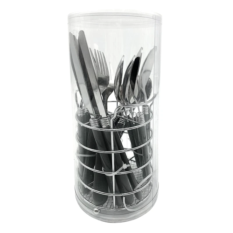 Metal & Grey Handle Flatware Set