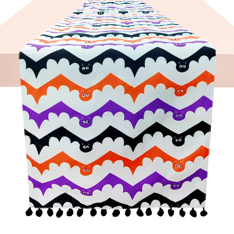 Multicolor Bat Print Table Runner, 72"