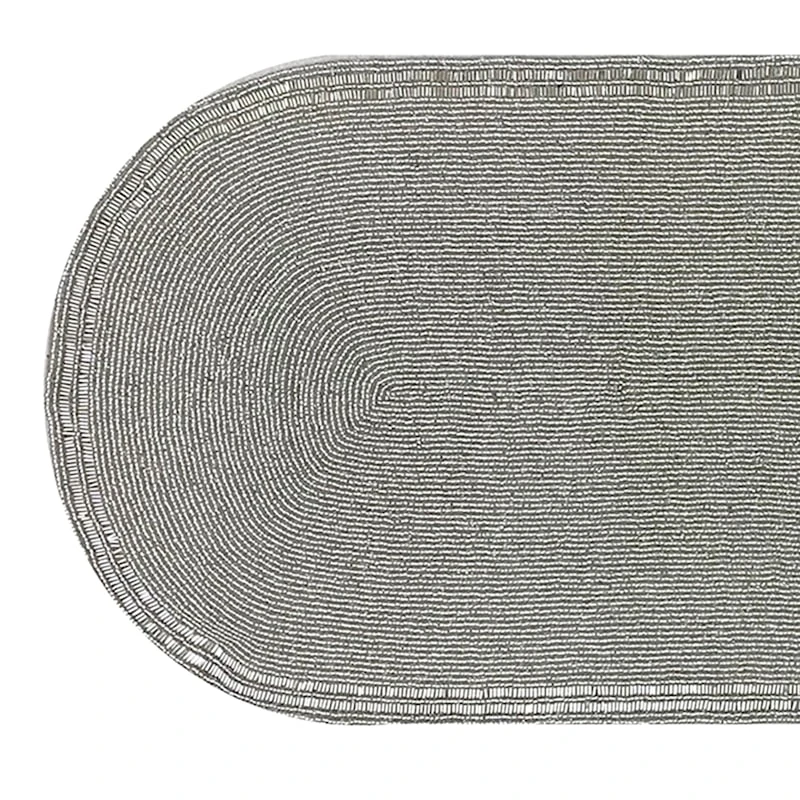 A collection that lets everyone relax in style. Polished finishes and classic hues pair with fun finds. Providence is where elegant settings still feel comfortable and warm—exclusively At Home. A timeless and beautiful beaded table runner will add personality to your dinner shimmer. Reinvent your tablescape with this fun 36in. silver beaded runner for your dining room, breakfast nook, or your outdoor patioscape. Hand clean only, and it will be ready to use year after year.