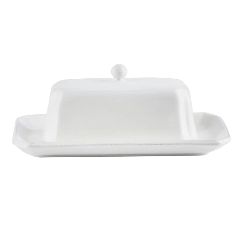 A collection that lets everyone relax in style. Polished finishes and classic hues pair with fun finds. Providence is where elegant settings still feel comfortable and warm—exclusively At Home. Our scalloped white butter dish is as beautiful as it is useful, this dinnerware piece is decorated with a flowing scalloped motif that will add an organic motif to your dinner table.