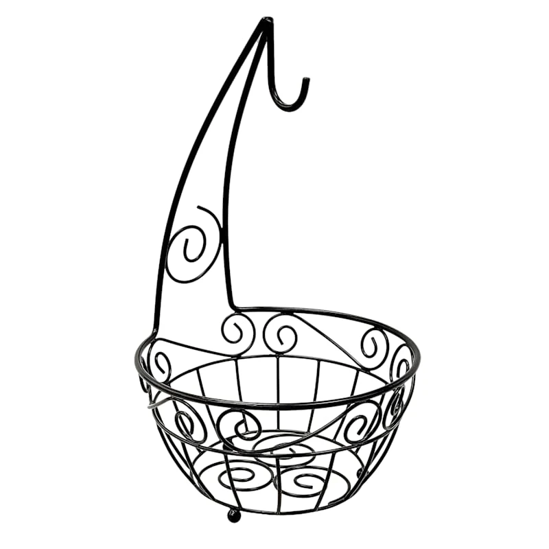 This metal fruit basket stand has a 10.2” wide basket with a banana hook. It features whimsical scroll designs for an ap-peel-ing way to store fruit on your kitchen counter. Keep bananas, avocados, apples, citrus, pears, grapes and stone fruit in this fruit basket until they’re ripe for the picking and ready to eat.
