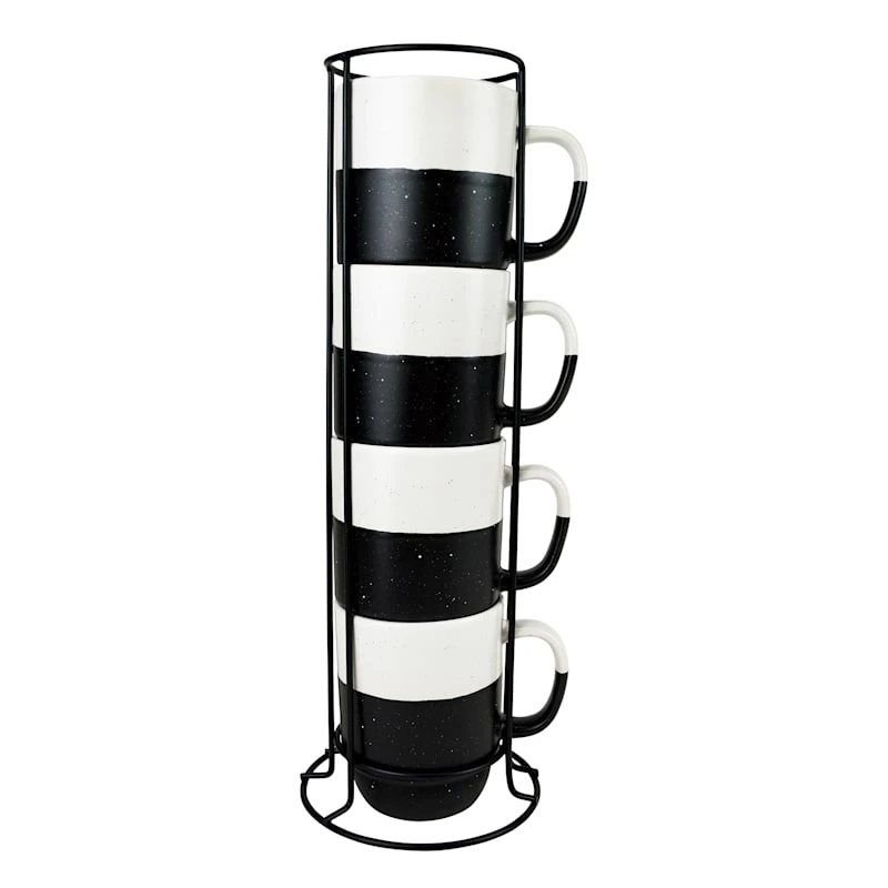 Set Of 4 Black & White Color Block Mugs, 14oz