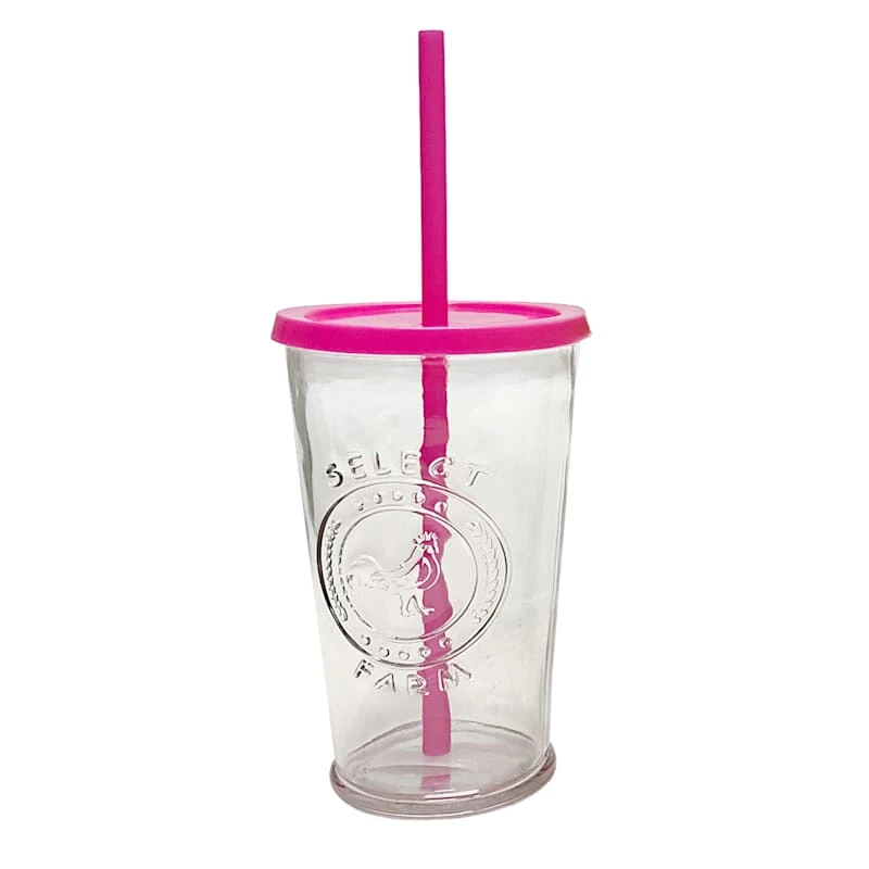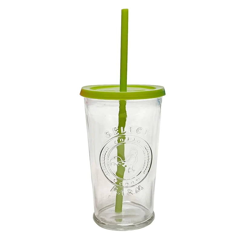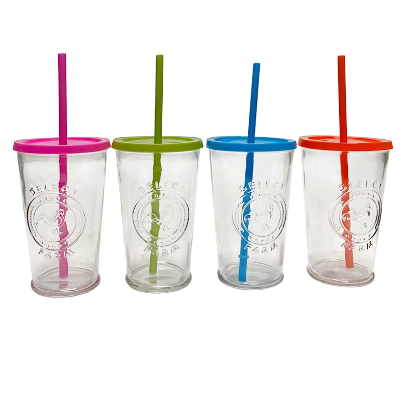 Set Of 4 Farm Fresh Cooler Tumblers With Color Lids & Straws, 16oz