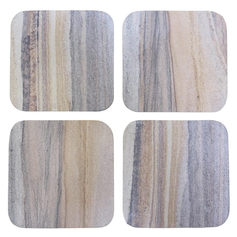 Set Of 4 Neutral Marbled Stoneware Coasters