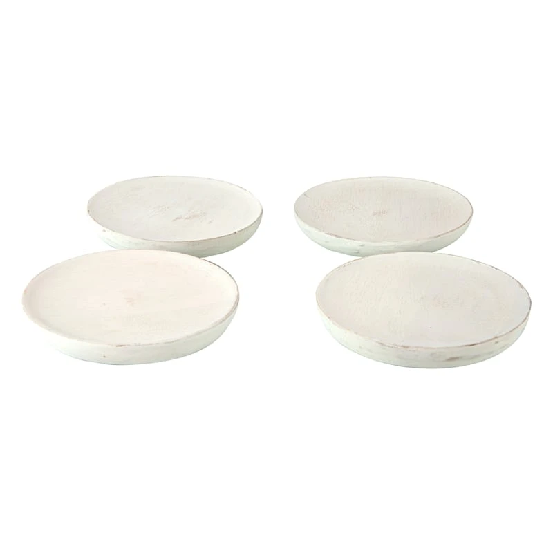 Set Of 4 Round White Wooden Coasters