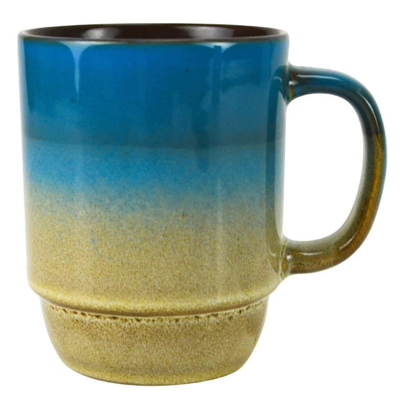 Set Of 4 Stacked Blue & Tan Mugs, 14oz