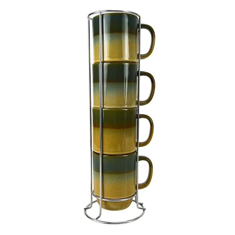Set Of 4 Stacked Brown & Tan Mugs, 14oz