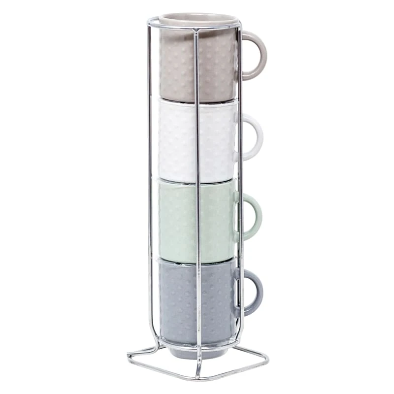 Set Of 4 Stacked Embossed Espresso Mugs, 3oz