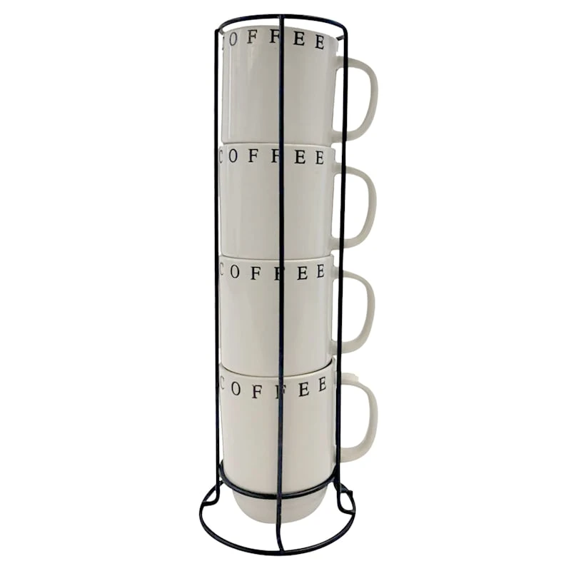Set Of 4 Stacked Tan Coffee Mugs, 14oz