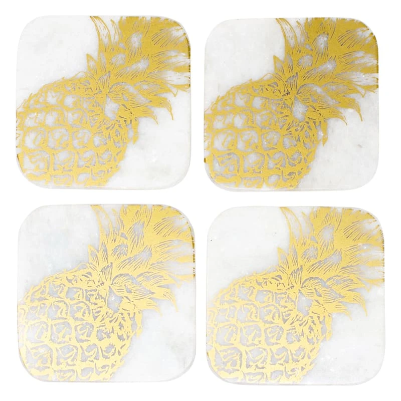 Set Of 4 White Pineapple Round Edge Stoneware Coasters