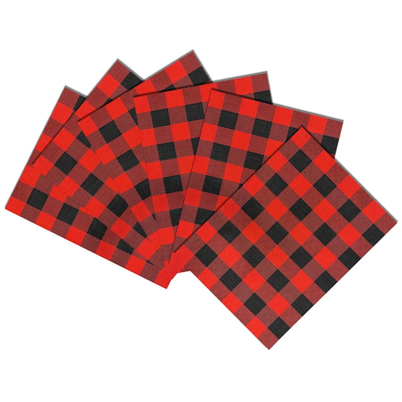 Set Of 6 Buffalo Check Woven Vinyl Placemat, Red