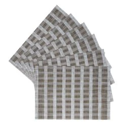 Set Of 6 Keshi Woven Golden Vinyl Placemats, 13×18