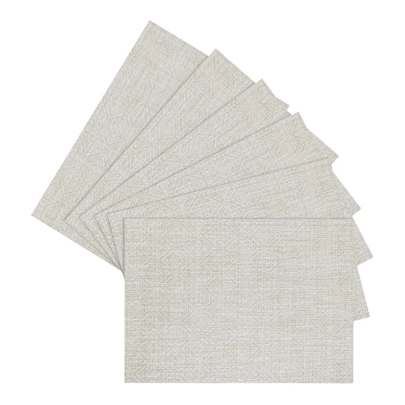 Set Of 6 Nala Fog Woven Vinyl Placemats, 18×13
