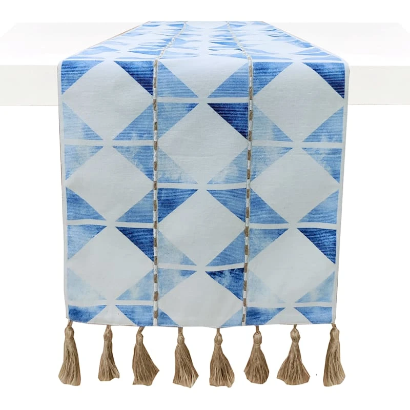 Tracey Boyd Blue Digi Print Table Runner With Tassels, 72"