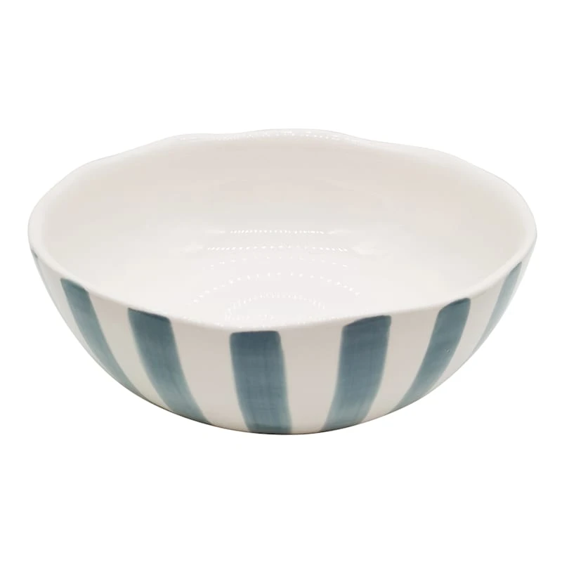 Ty Pennington Cozy Cottage Blue Striped Ceramic Bowl, 10.5"