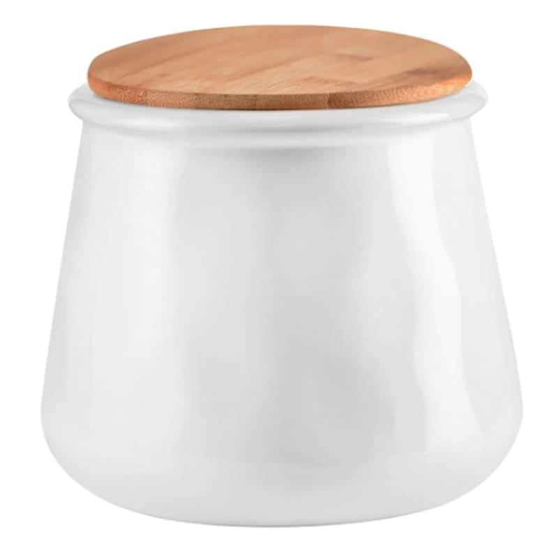 Add a touch of convenience to your kitchen with our simple white canister. Crafted from white stoneware and featuring a wooden lid, this canister is not only functional but also a stylish addition to any countertop. Measuring 7 in. L x 7 in. W x 6 in. H, it provides ample storage space for all your kitchen go tos. Whether you store cookies, coffee beans, or tea bags, our white canister has got you covered. The sleek design seamlessly blends with any decor, making it a versatile choice for every countertop.