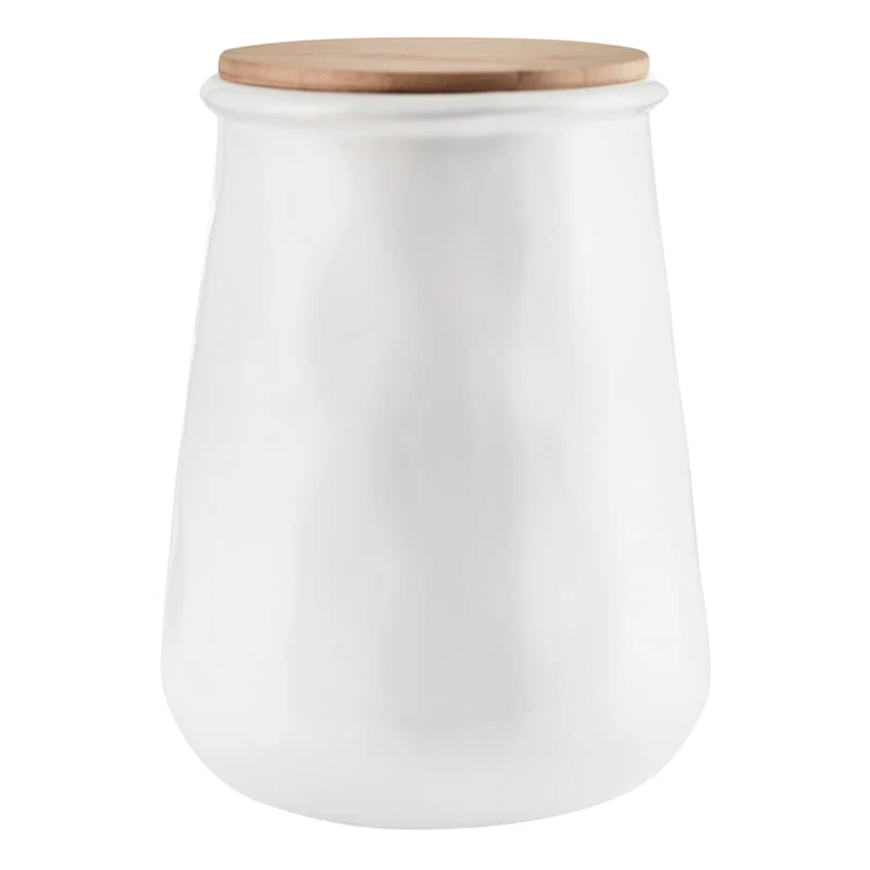 White Canister With Wood Lid, 9"