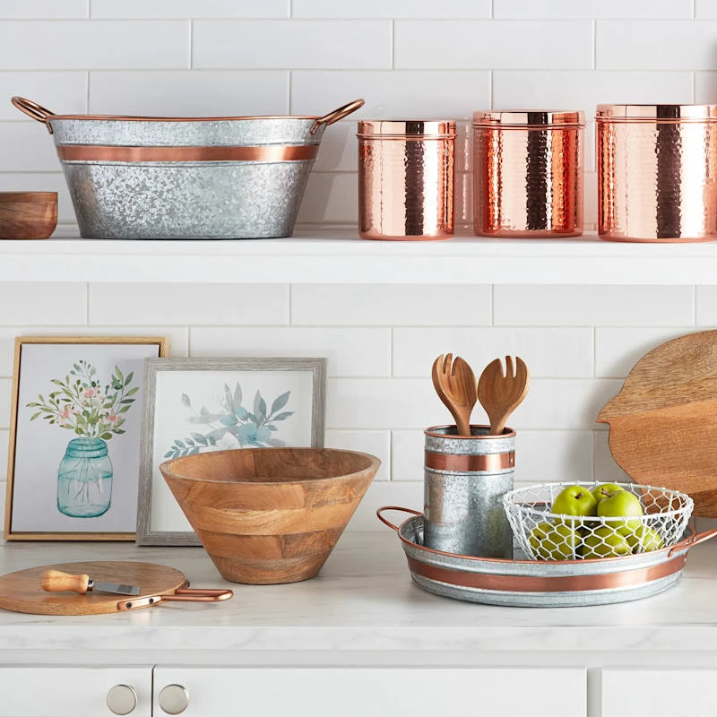 White Iron Chicken Wire Weave & Mango Wood Basket, Large
